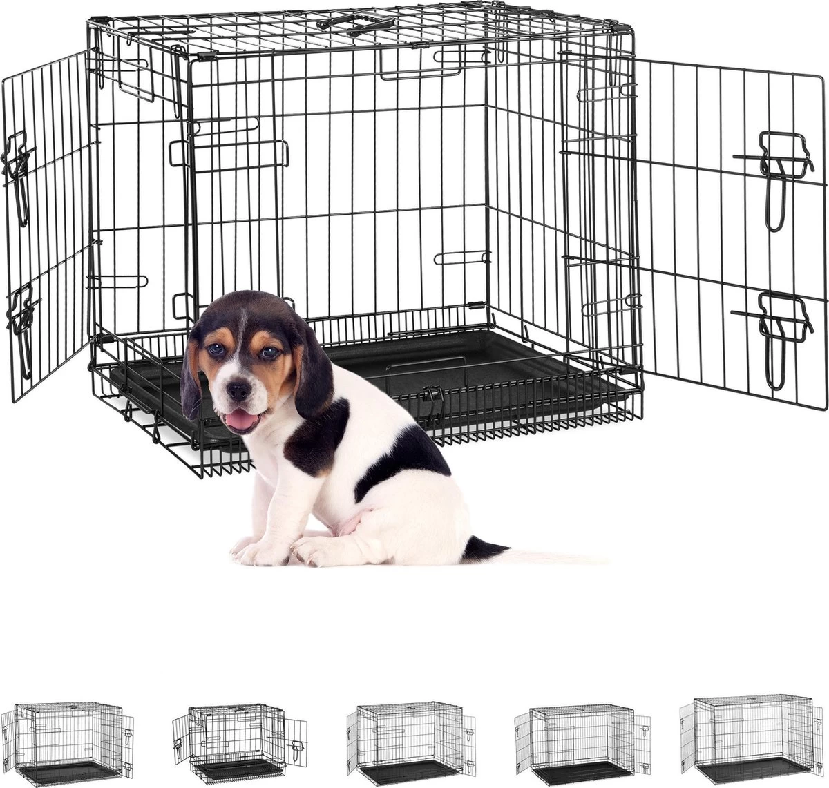 De opvouwbare bench is handig voor hondenbezitters en komt goed van pas bij het trainen van puppy’s of bij een autoreis, maar is ook te gebruiken als mand voor thuis. Met dank aan de deurtjes die aan de voor- en zijkant van de kooi zitten kun je makkelijk bij de binnenkant van de kooi komen. Het handvat maakt het makkelijk de draadkooi te transporteren. Bij de keuze voor een bench moet je rekening houden met de grootte van je hond en hem zo kiezen dat de hond zowel kan liggen als kan staan. Leg een zachte deken in de kooi om het comfortabeler voor je viervoeter te maken.
