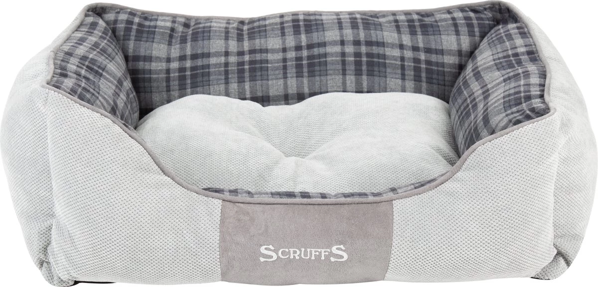 Scruffs Highland Box Bed in rood, blauw of grijs De Scruffs Highland hondenmand is geproduceerd met een stevige, hoogwaardige chenille stof. De levendige kleuren worden gecombineerd met een schotse ruit en imitatie suède biezen. Elke hondenmand heeft een antislip onderzijde. Deze stevige hondenmand kan eenvoudig in de wasmachine gewassen worden. De hondenmand is uit een stuk geconstrueerd waardoor het je hond meer steun biedt en langer zijn vorm behoudt.