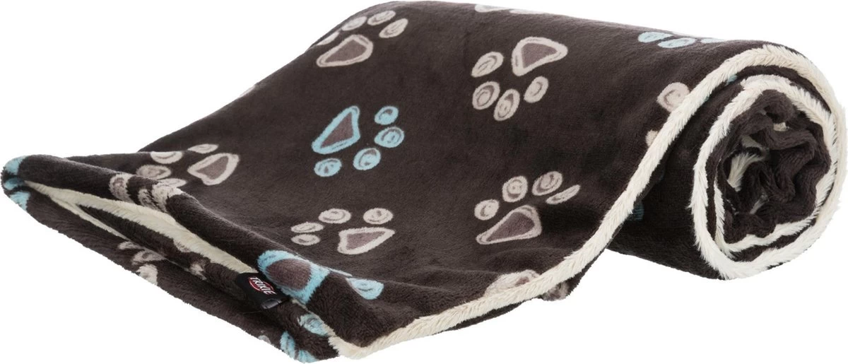 Dit leuke deken is een bijzonder comfortabel deken voor de hond, van twee soorten heerlijk zacht pluche. Deken Jimmy heeft een donkerbruine kant van kortharig pluche met pootafdrukjes-print en een andere kant van langharig, crèmekleurig pluche dat heerlijk zacht aanvoelt. Het deken is geschikt voor allergielijders.